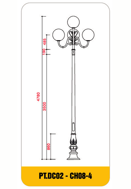 Chùm đèn bằng nhôm định hình có cơ tính cao, được uốn trên máy uốn tự động đảm bảo chính xác và tính thầm mỹ cao.
